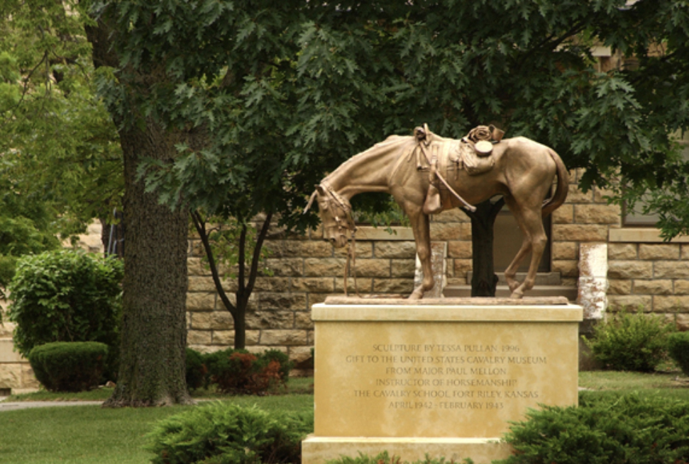 Placed on the museum grounds in 1997, this statue is dedicated to the million and a half horses and mules that perished or were used during the Civil War.This three-quarter size statue of a riderless horse ravaged by the war was commissioned by Paul Mellon who served at Fort Riley during World War II.